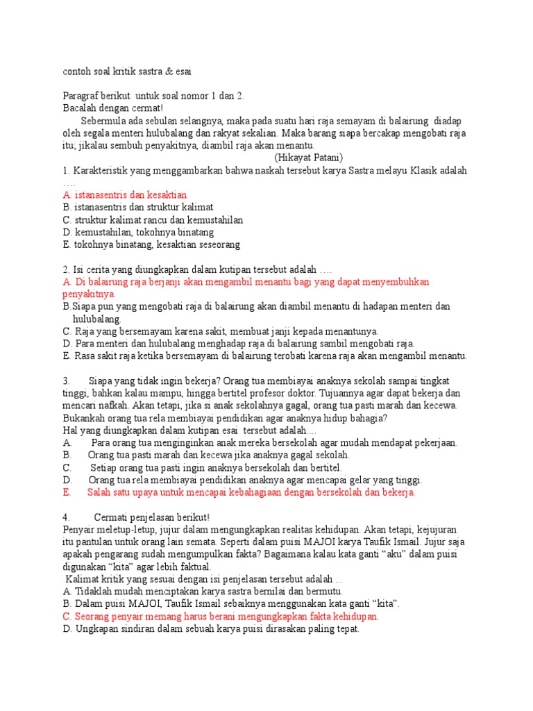 Contoh Soal Kritik Dan Esai Sastra Kunci Jawaban Cute766