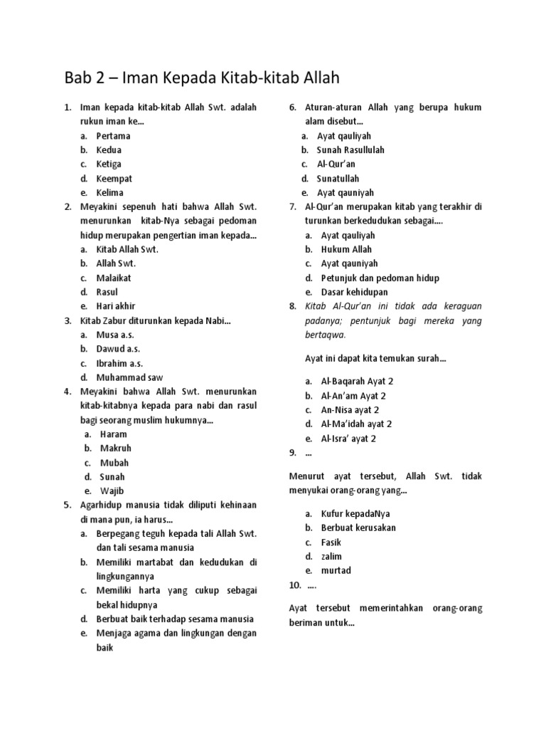 Agama Islam Latihan Soal Bab Beriman Kepada Kitab Allah