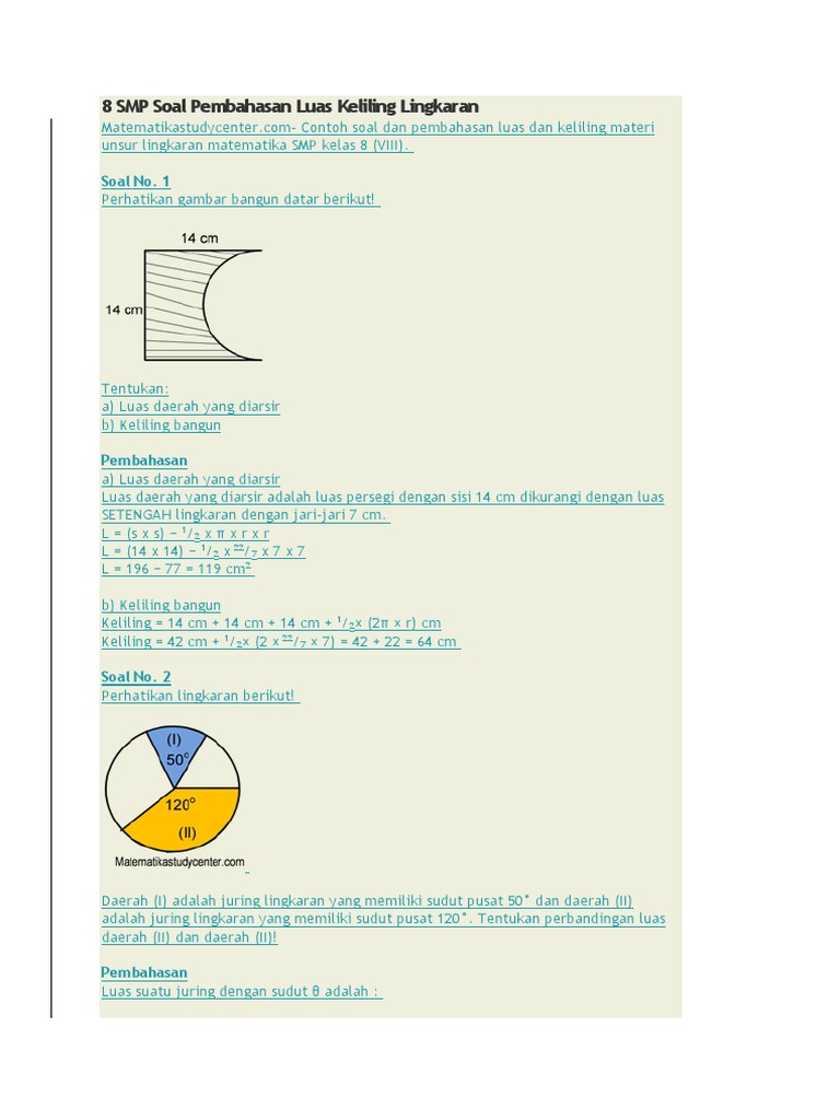 8 Smp Soal Pembahasan Luas Keliling Lingkaran Docx